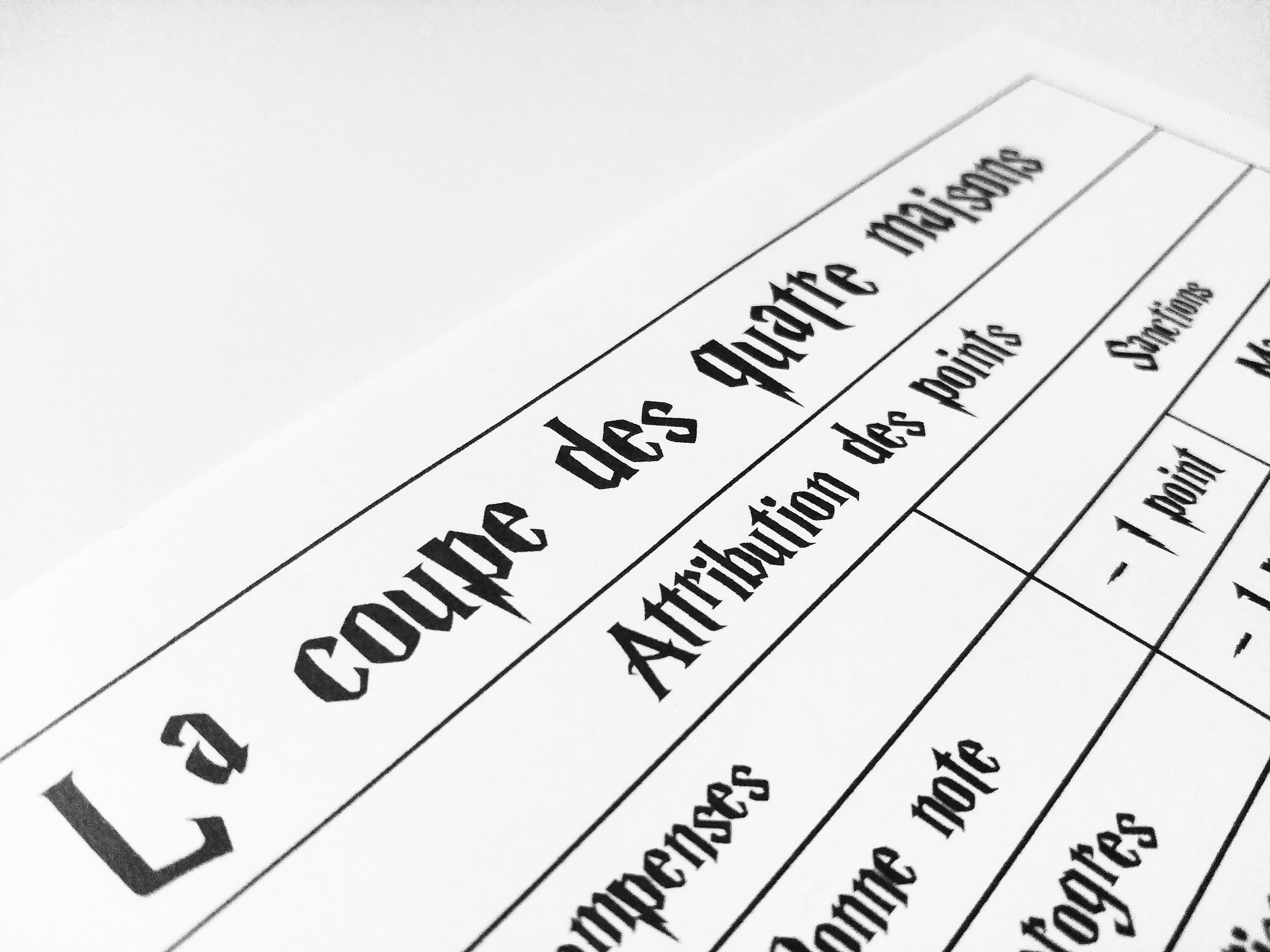 La coupe des quatre maisons Poudlard collège Harry Potter